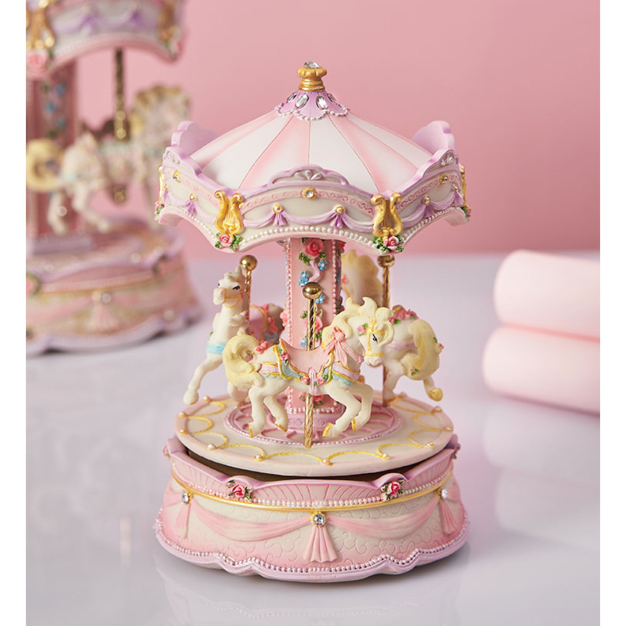 钻石旋转木马音乐盒带灯/粉色标准版